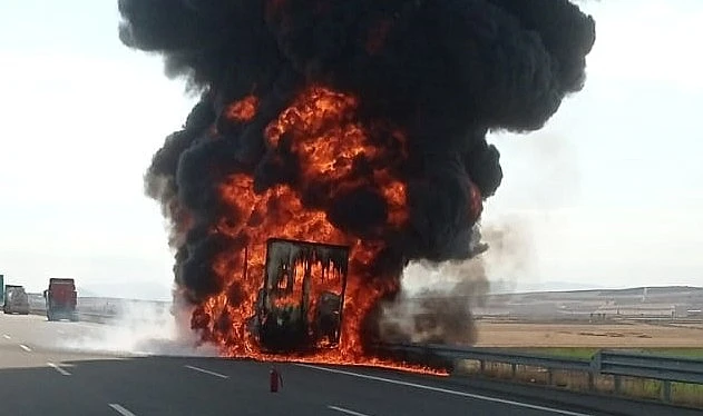 Jandarma görevlileri güvenlik önlemi alarak yolu trafiğe kapattı, itfaiye ekipleri yangına müdahale etti. Ekiplerin çalışması sonucu söndürülen yangında tırın dorsesi kullanılamaz hale geldi.