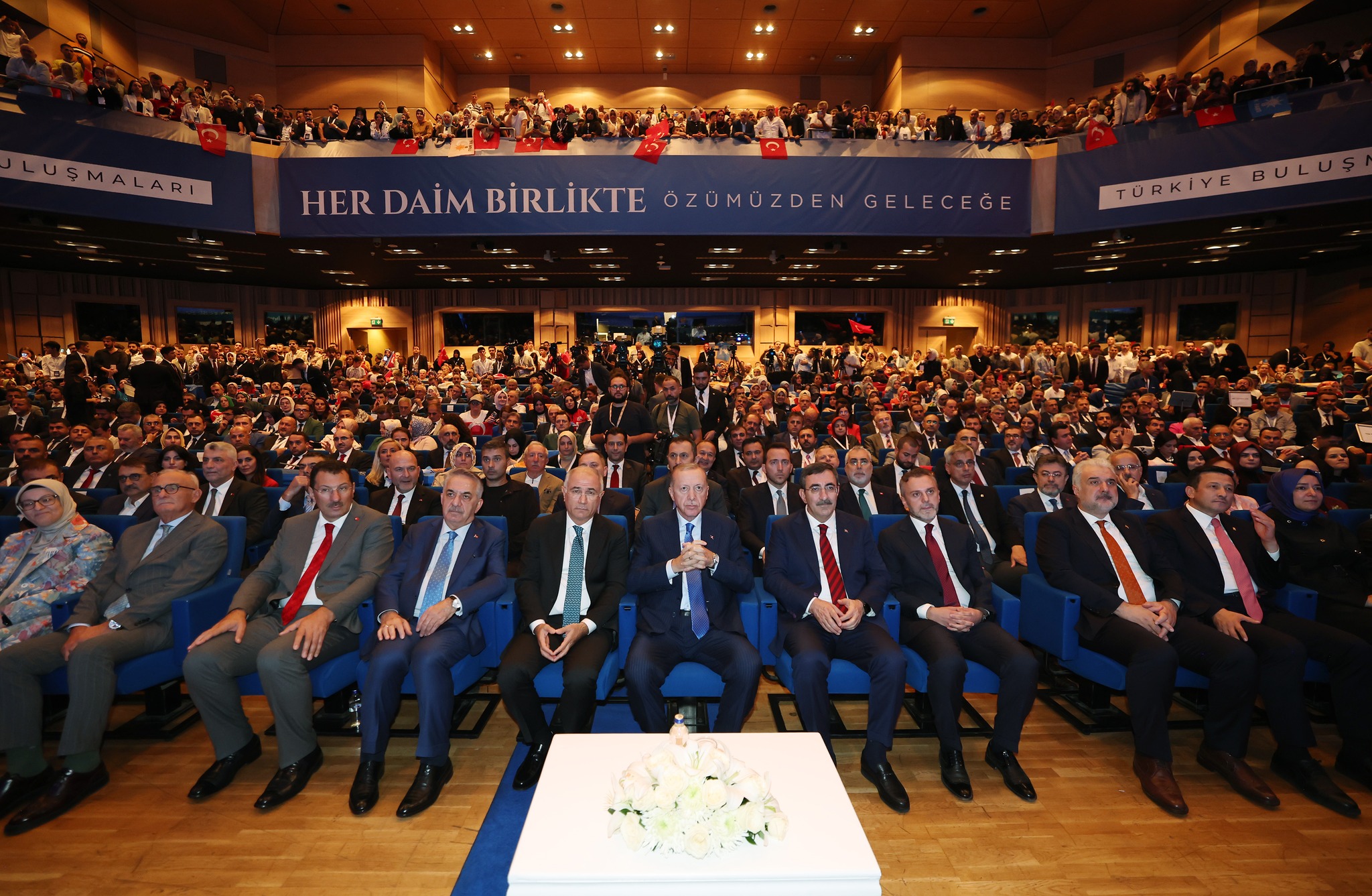 Toplantıda konuşan Cumhurbaşkanı Erdoğan ise, “Bir ay önce başlattığımız ve adına Özümüzden Geleceğe Türkiye Buluşmaları dediğimiz kucaklaşma seferberliğimizi İstanbul programımızla hitama erdirdik.