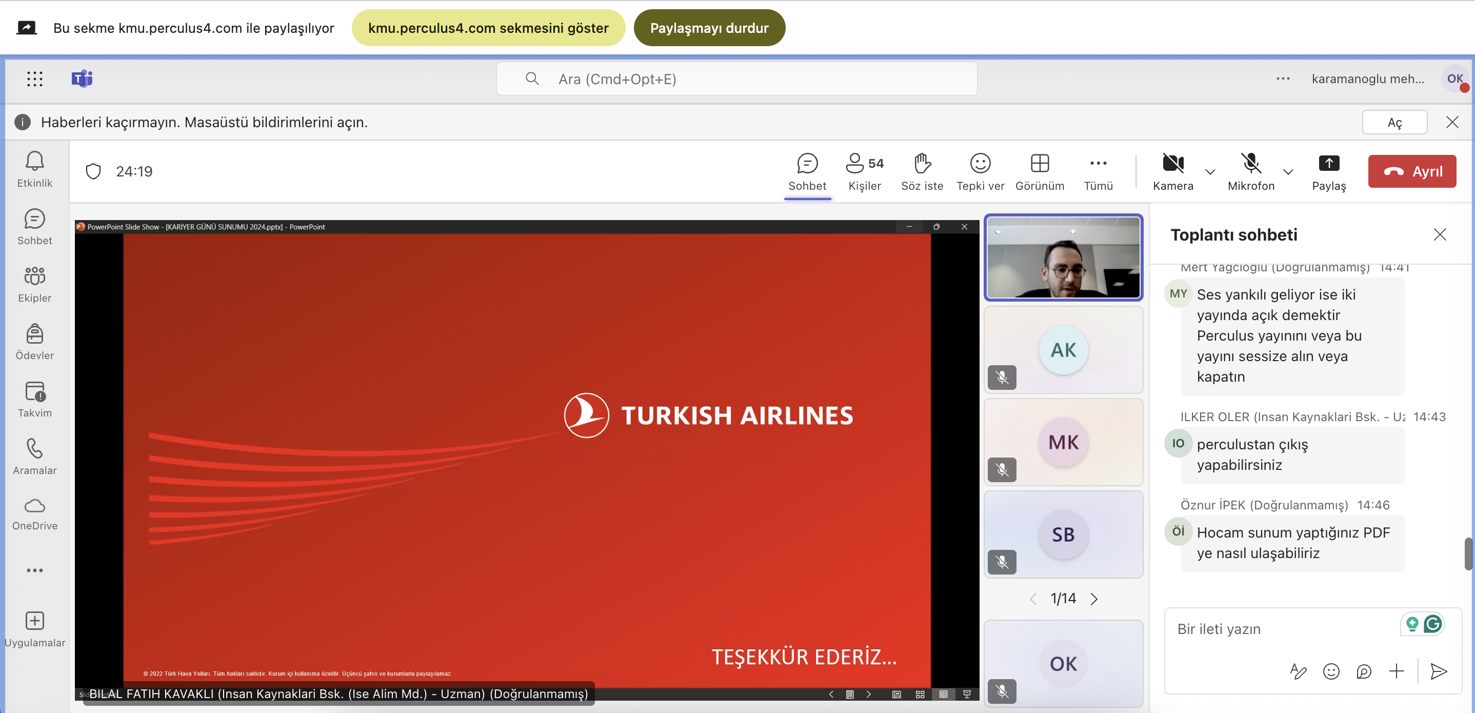 Türk Hava Yolları (THY) tarafından gerçekleştirilen konferans KMÜ Kariyer Merkezi Müdür Yardımcısı ve Mezunlar Derneği Başkanı Arş. Gör. Dr. Yunus Emre Büyükbasmacı moderatörlüğünde başladı.