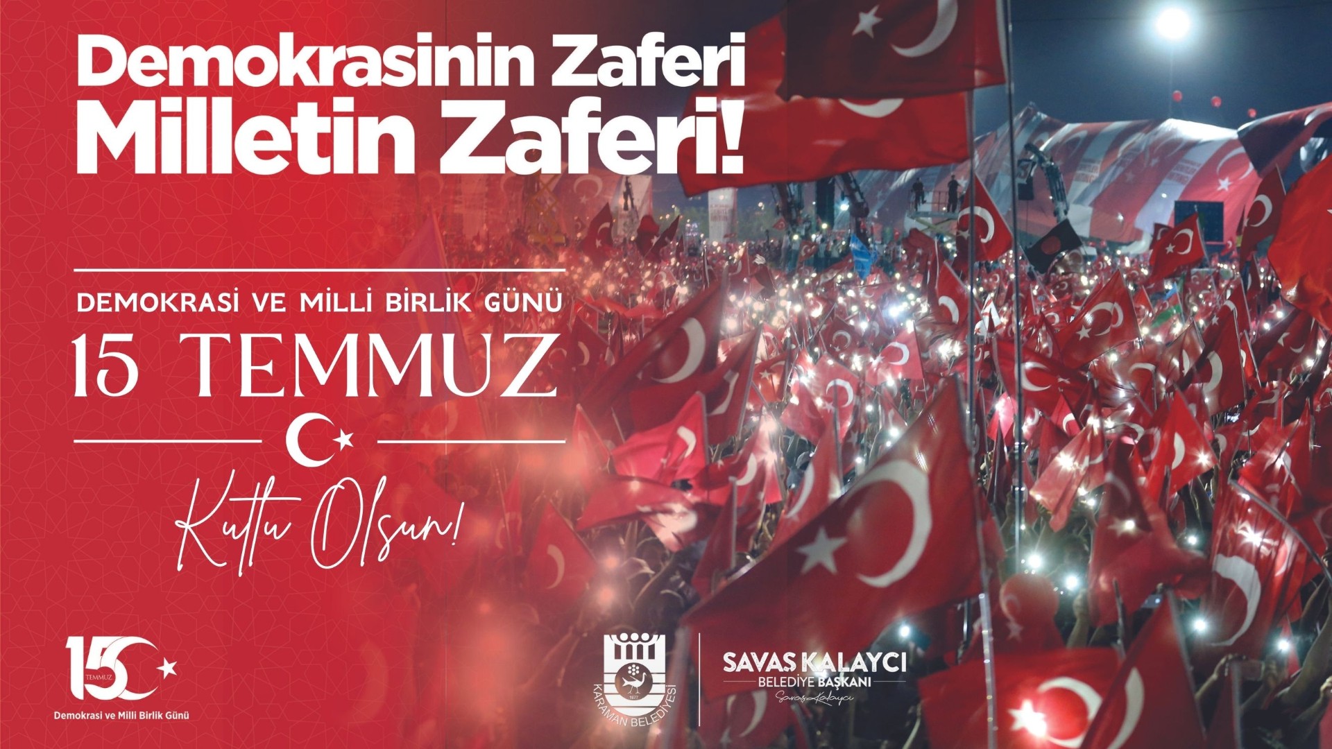 Belediye Başkanı Savaş Kalaycı mesajında: “15 Temmuz; inandığı değerler uğruna millet olmanın asaletini, birlikteliğin gücünü gösterdiğimiz demokrasi ve milli birlik günüdür.