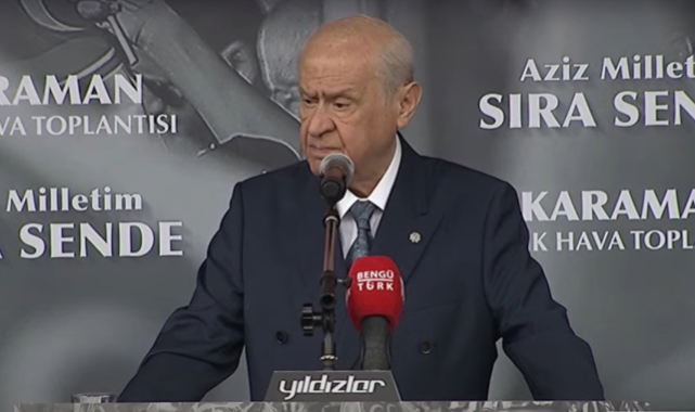 Karaman'da konuşan MHP Genel Başkanı Devlet Bahçeli, "Karaman’ın gönlümüzde muazzam bir yeri vardır. Karaman Müslüman Türk Milletinin gurur tablosu ortak paydasıdır. Tam 746 yıl önce, Karamanoğlu Mehmet Bey’in yayınladığı, ‘Bugünden sonra, hiç kimse sarayda, divanda, mecliste ve seyranda Türk dilinden başka dil kullanmaya’ fermanı Türkçe’nin hem de büyük Türk Milletinin iftihar vesikasıdır. Karaman anamızın ak sütü kadar, Türkçe’nin bayraklaştığı vatan köşesidir. Bu vesileyle Türkçe sevdalısı aziz ceddimizi hürmet ve rahmetle yad ediyor; hepsinin kabirleri nur, mekanları cennet olsun.