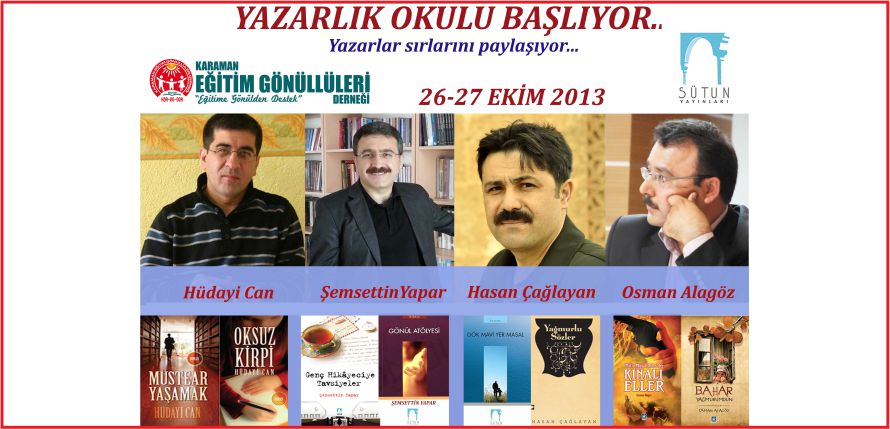 Eğitime gönülden destek sloganıyla yola çıkan derneğimiz; insanın özünde yer alan güzelliklerin ortaya çıkmasında rol alabilmek ve nesillerin yetişmesine katkı sağlayabilmek için, kültür dünyamızın zenginliklerini ve dinamiklerini yaptığı ve yapacağı etkinliklerle gündeme taşımaktadır. Eğitim sezonunun başında Sütun Yayınları ile ortaklaşa olarak Hüdayi Can, Hasan Çağlayan, Osman Alagöz ve Şemsettin Yapar’ın da dâhil ğu dört değerli yazarımızı iki gün sürecek yazarlık okulu için ilimizde buluşturacağız. Türkçenin başkentinde olmamızdan dolayı daha da ehemmiyet kazanan dilimiz, ceddimizin bize miras bıraktığı en büyük servet ve emanettir. Biz dilimizin kelimeleri içinde milli tarihimizin en eski seslerini duyuyoruz. Bu sesleri yazarlık okuluyla herkese duyurmak istiyoruz. Değerlerimizi; şiir, deneme, hikâye ve romanlarıyla duyurma derdinde yazarlarımız, ilimizde yazı yazma ile ilgili incelikleri ve sırlarını paylaşacaklardır.