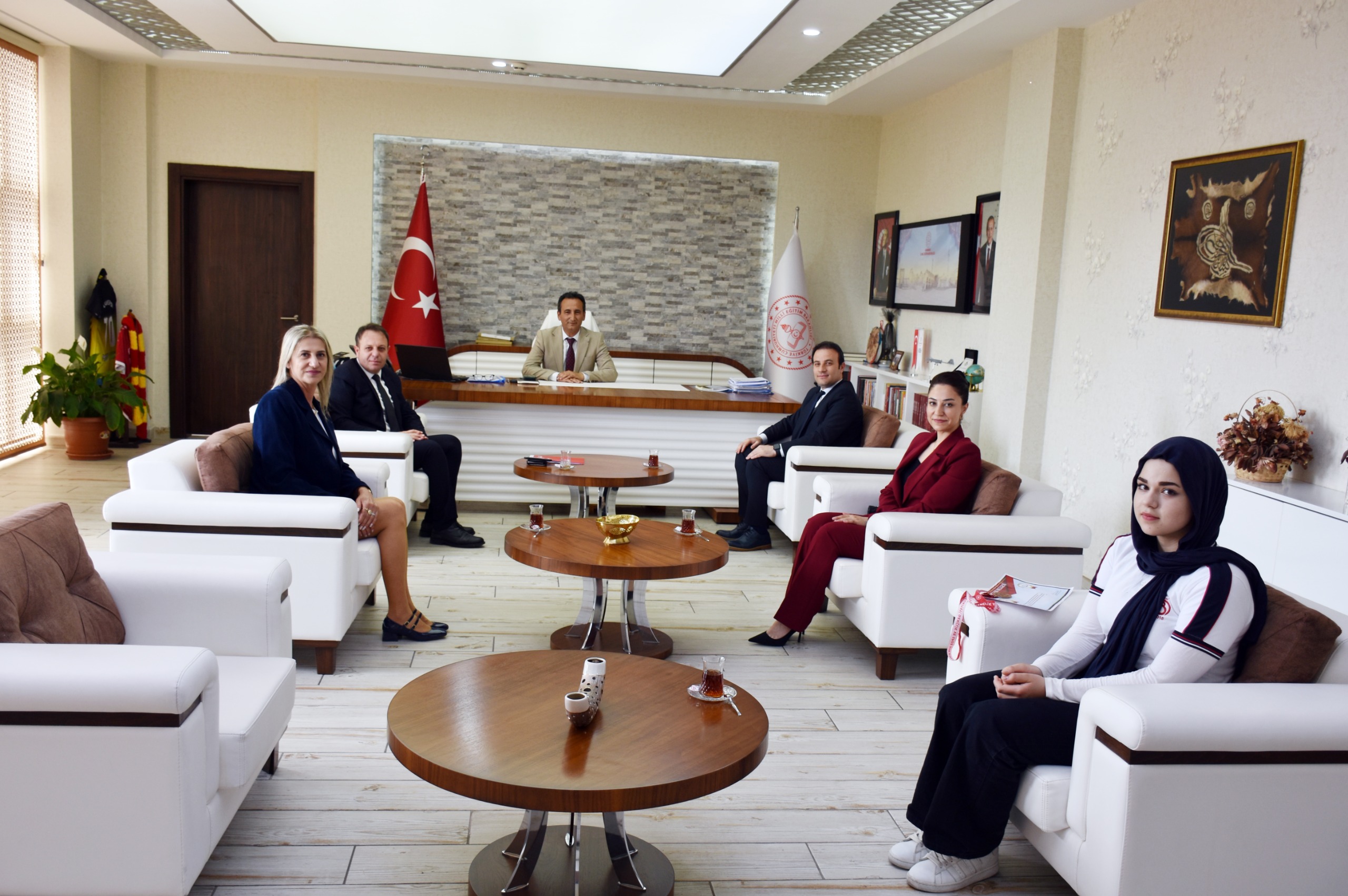 Ziyaretin sonunda İl Millî Eğitim Müdürü Mehmet Çalışkan, Güzel Cüccam’ı başarısından dolayı ödüllendirirken, hatıra fotoğrafı çekimiyle program sona erdi.