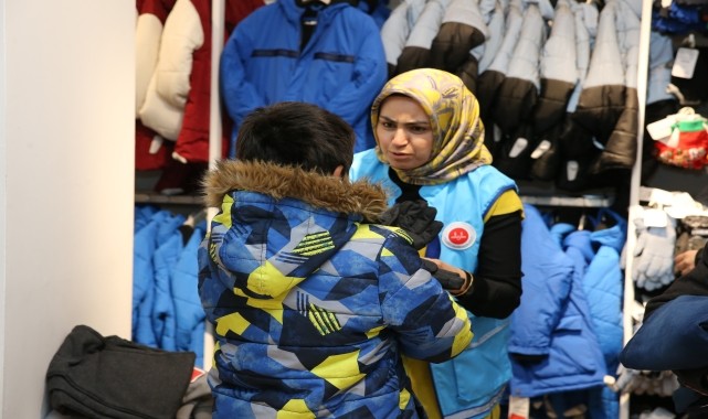 Mağazada mont, bot, atkı gibi kışlık kıyafetleri isteklerine göre seçen çocuklara, TDV Eskişehir Şubesi Kadın Kolları üyeleri ve gönüllüleri de yardımcı oldu.