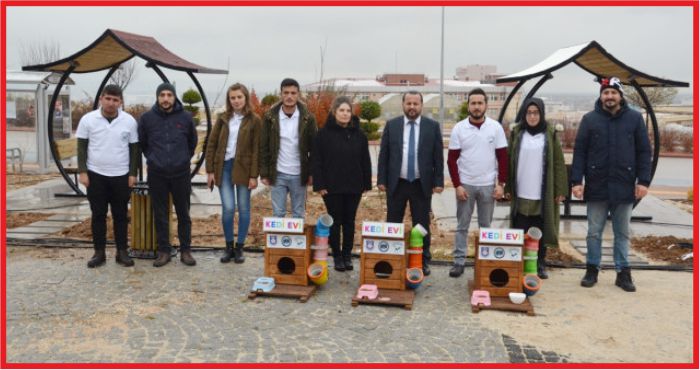 KARAMAN (AA) - Karamanoğlu Mehmetbey Üniversitesinde (KMÜ) İletişim Topluluğu öğrencileri, kediler ve köpekler için "ev" yaptırdı.
