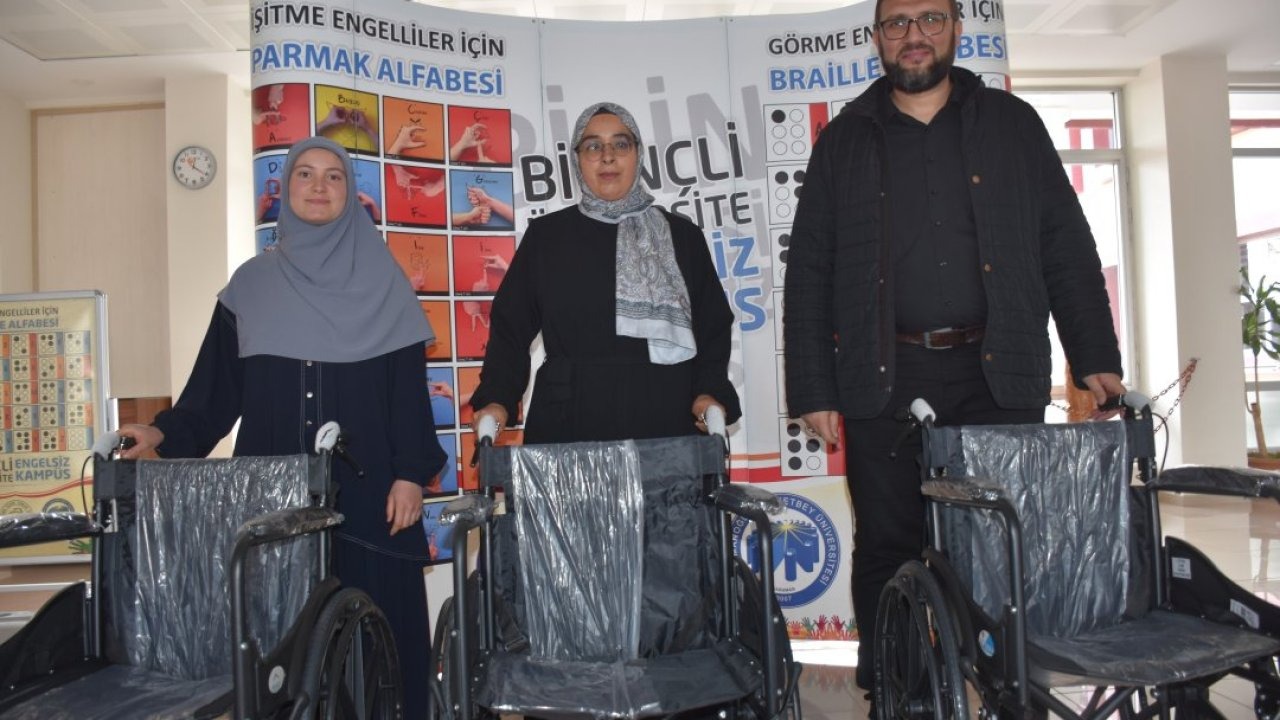 Karamanoğlu Mehmetbey Üniversitesi (KMÜ) İlahiyat Fakültesinden iki öğrenci, engellilerin ibadetlerinde cemaatle bir olma ruhunu yaşayabilmeleri için temin ettikleri 18 tekerlekli sandalyeyi camilere bağışladı.