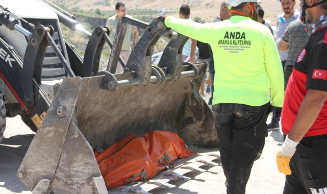 Olay yeri inceleme ekiplerinin çalışmasının ardından sedyeyle ile alınan cenaze, iş makinesinin kepçesinde viyadük yoluna çıkarıldı.