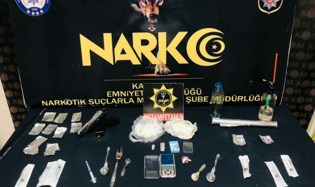 Şüphelilerin evlerinde yapılan aramada, bir miktar uyuşturucu, 1 hassas terazi ve 1 ruhsatsız tabanca ele geçirildi.