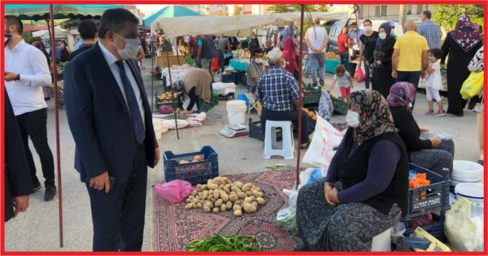 Vali Mehmet Alpaslan Işık, Salı Pazarını ziyaret ederek covid-19 koronavirüs salgınına ilişkin alınan tedbirleri yerinde denetledi.