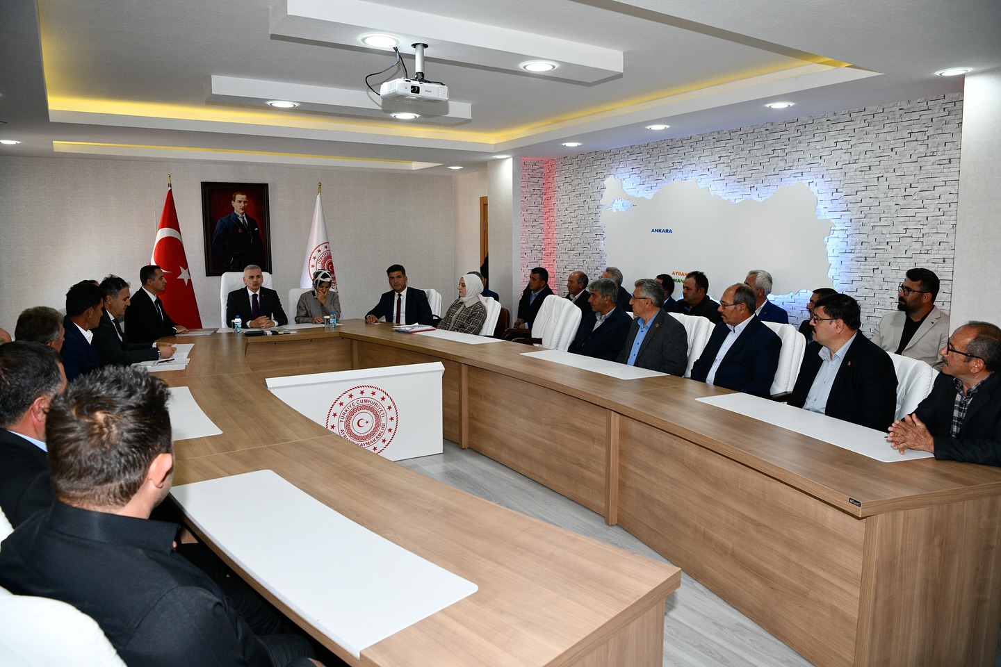 Muhtarlarla yapılan toplantı sonrasında Vali Çiçekli ve eşi Esengül Korkmaz Çiçekli, Ayrancı Belediyesine geçerek Belediye Başkanı Yüksel Büyükkarcı’dan belediye çalışmaları hakkında bilgi aldı.