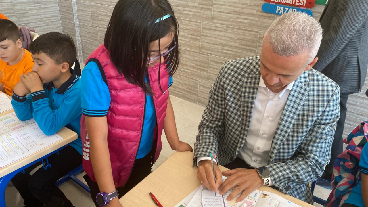 Okulda sınıfları gezen ve öğrencilerle sohbet eden Vali Çiçekli, çocukların heyecanına ortak oldu.Onlarla gelecek hedefleri üzerine konuşan Vali Çiçekli, eğitimin önemine dikkat çekerek öğrencilere çok okumaları ve hayallerinin peşinden gitmeleri yönünde tavsiyelerde bulundu.