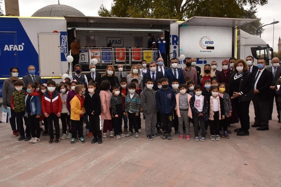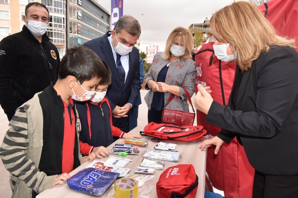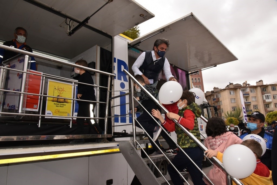 Bir hafta boyunca kentin farklı noktalarında gerçekleştirilmesi planlanan simülasyon tırının açılış programının sonunda öğrencilerle bir süre sohbet eden Vali Işık, deprem sırasında yapılması gerekenleri anlatan içerisinde eğitici ve öğretici çalışmaların yer aldığı çantaları öğrencilere hediye etti.