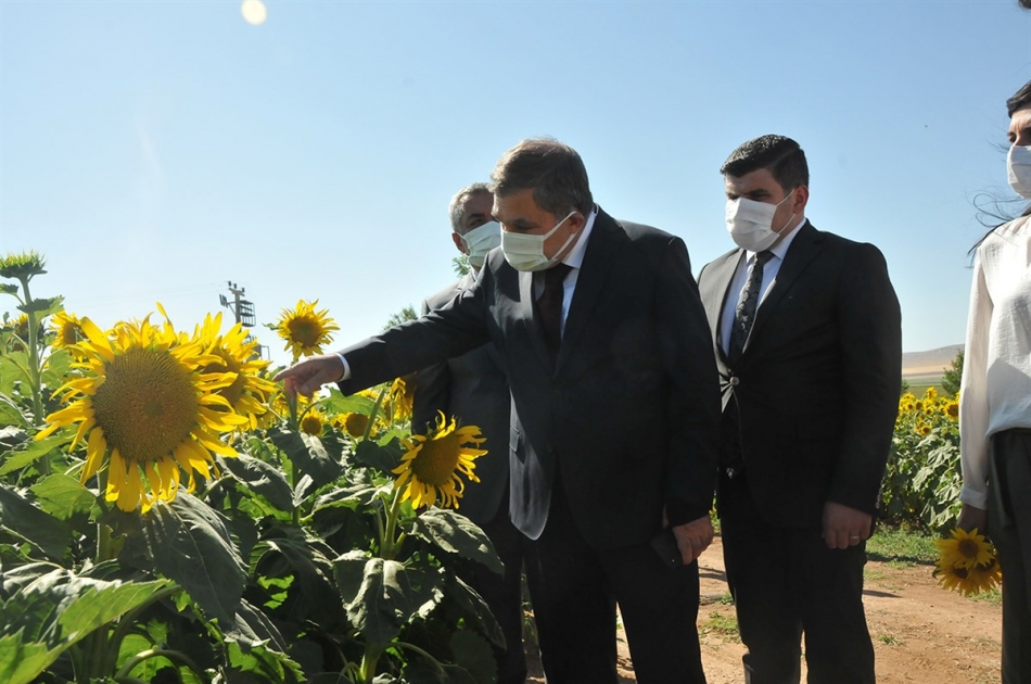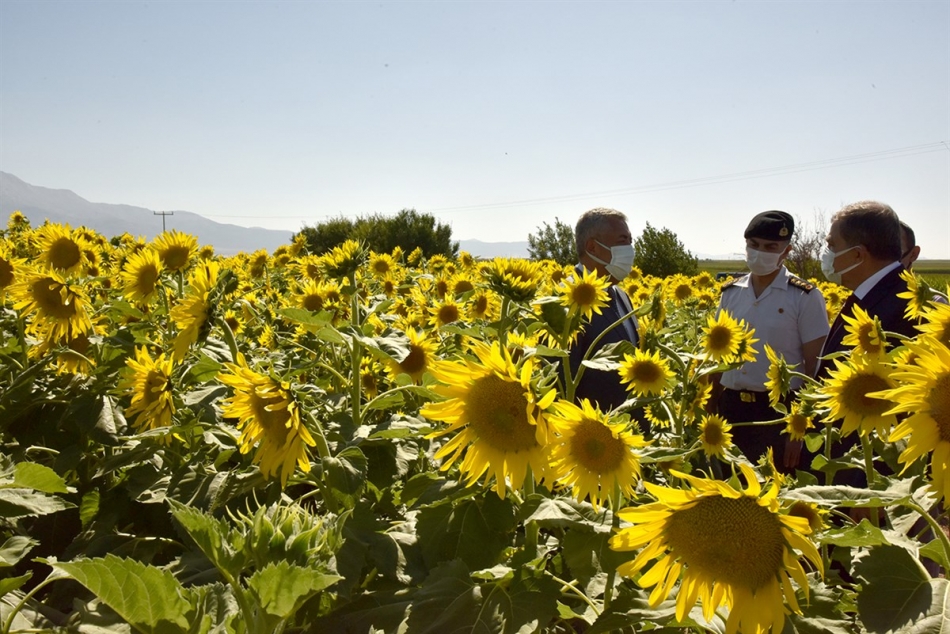 Kâzımkarabekir İlçesi Karalgazi köyünde ekilmiş olan tohumluk ayçiçeği tarlasında incelemelerde bulunan Vali Işık, ayçiçek yetiştiricisi ve tarla sahibi vatandaştan ürün hakkında bilgiler aldıktan sonra ilçeden ayrıldı.