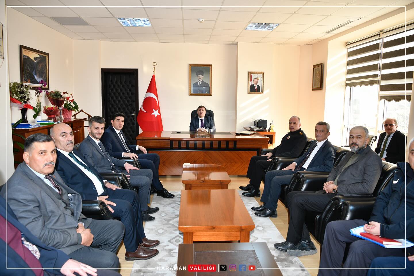 Ermenek Kaymakamlığını ziyaret eden Vali H. Engin Sarıibrahim, Kaymakam Fatih Erdoğan’dan ilçenin genel durumu ve yürütülen çalışmalarla ilgili bilgi aldı.