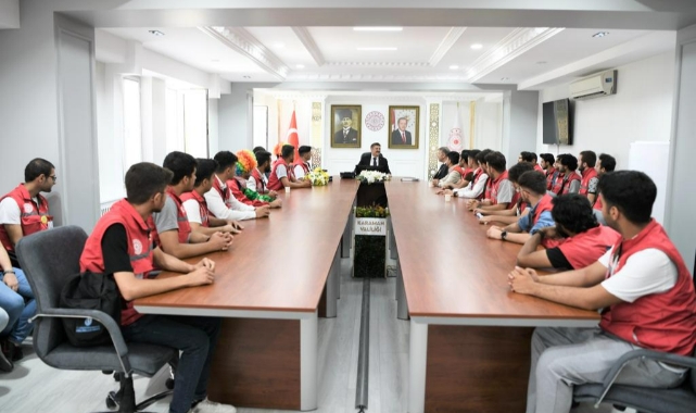 Gençlik ve Spor Bakanlığı’nın Damla Gönüllülük Hareketi Projesi kapsamında Endonezya, Bangladeş ve Türkiye’nin farklı illerinden Karaman’a gelen 43 gönüllü genç Karaman Valisi H. Engin Sarıibrahim’i ziyaret etti.