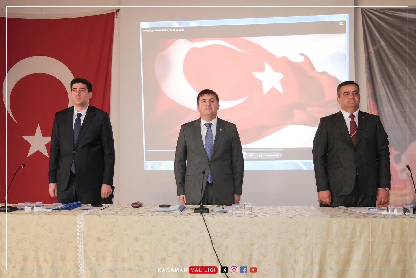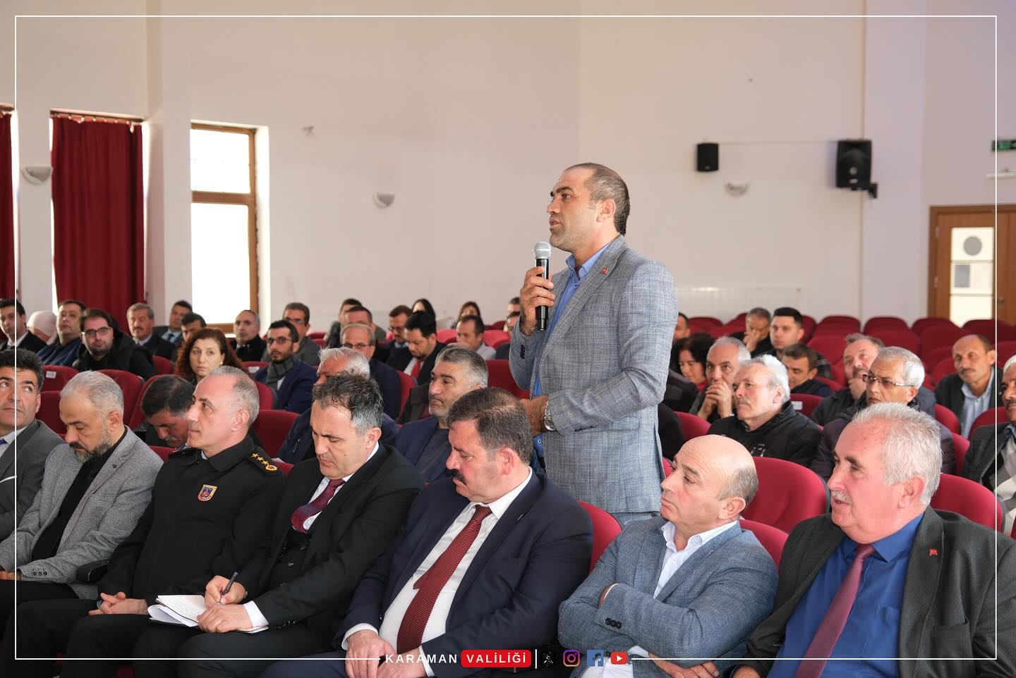 Toplantıya Ermenek Kaymakamı Fatih Erdoğan,İl Jandarma Komutanı Kd.Alb. Murat Alkan, İl Genel Meclisi Başkanı Eyyup Çayır, İl Özel İdaresi Genel Sekteri Ali Yener Terlemez ve İl Genel Meclisi Üyeleri de katıldı.