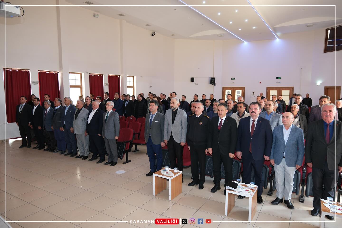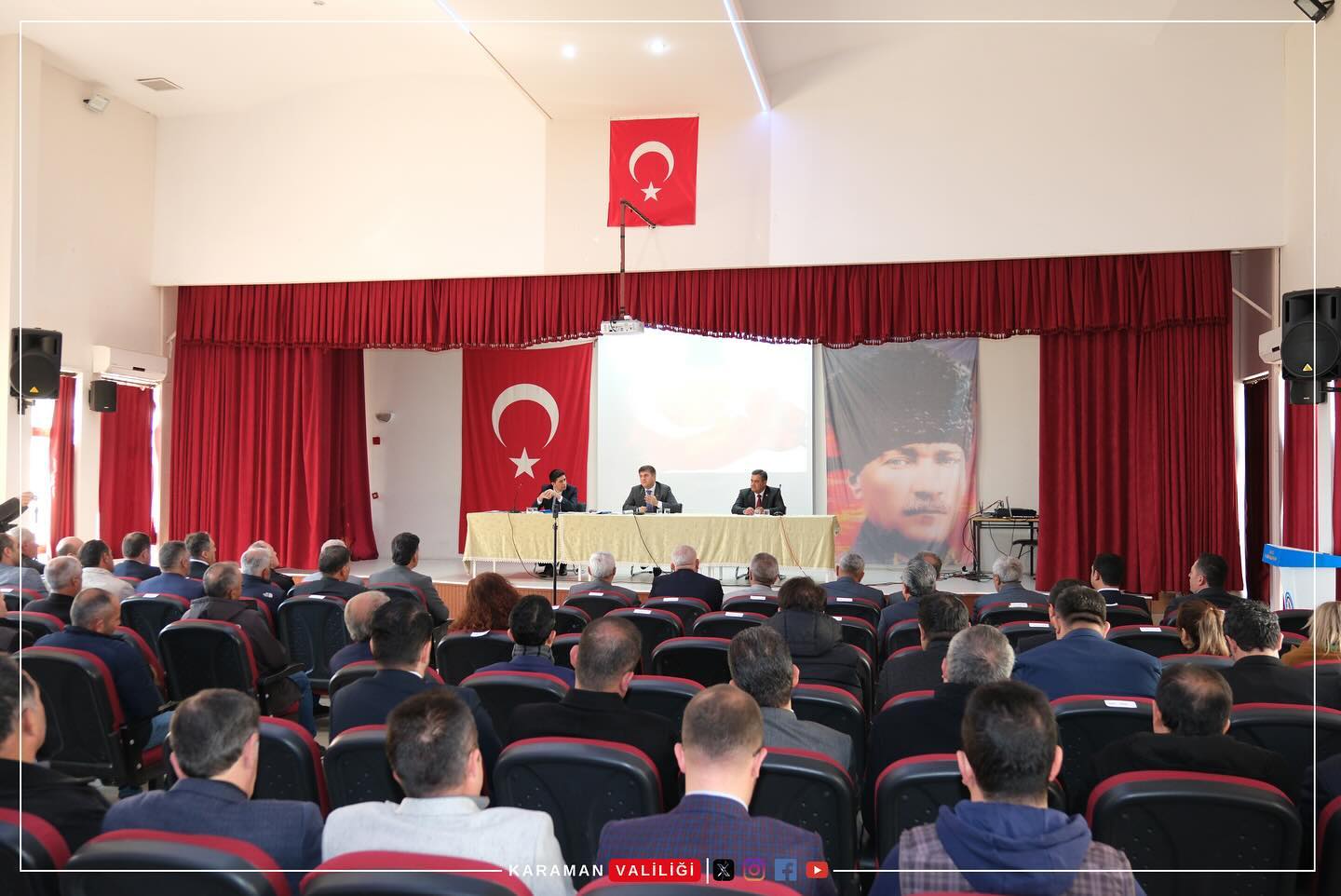 Vali H.Engin Sarıibrahim, Ermenek programı kapsamında Ahmet Keleşoğlu Kültür Merkezi’nde köy muhtarları ile bir araya geldi.