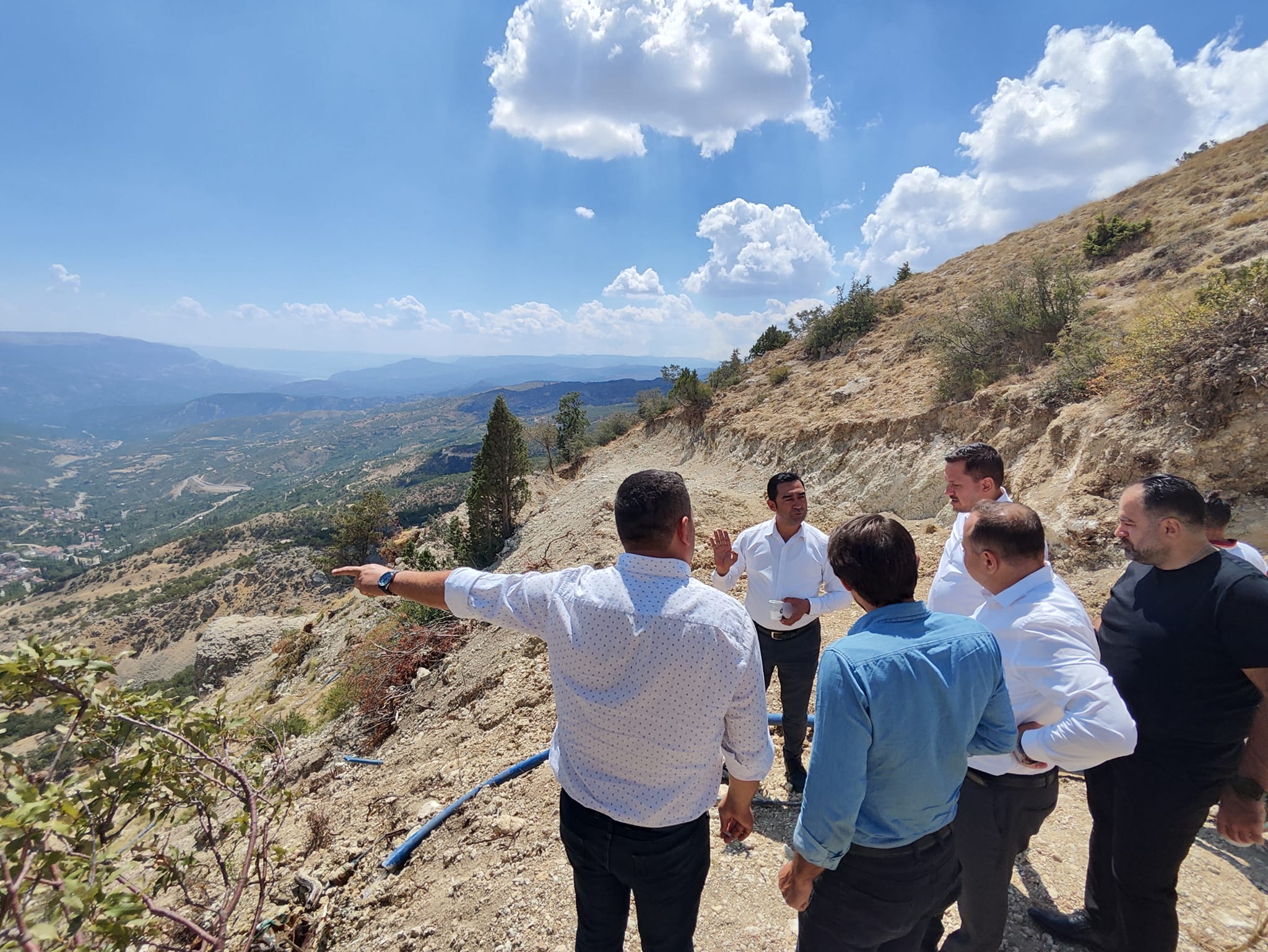 AK Parti Karaman Milletvekili Selman Oğuzhan Eser yaşanan kuraklık sebebiyle Başyayla ilçe halkının ihtiyaç duyduğu içme ve tarımsal sulama suyuna ilave kaynaklar arayan ve bu doğrultuda çalışmalar yapan belediyenin Deliktaş mevkiindeki çalışmalarını yerinde inceledi.