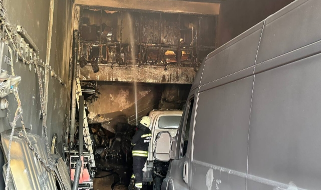 Çıkış sebebi araştırılan yangın nedeniyle kullanılamaz hale gelen dükkanın içindeki 3 otomobil de hasar gördü.