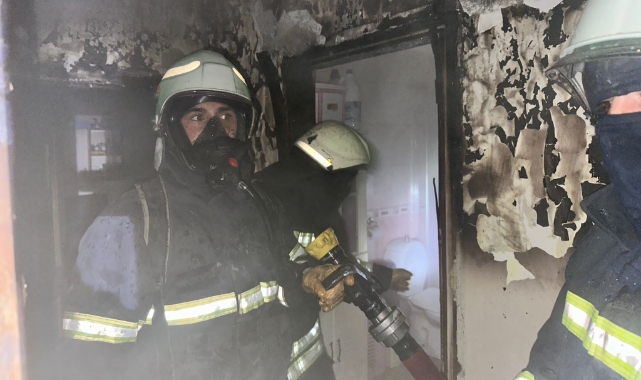 Ekiplerce söndürülen yangında, daire kullanılamaz hale geldi.