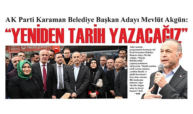 Akgün konuşmasının devamında suya zam 2019 yılında Karaman Belediye Başkanlığı koltuğuna oturan MHP’li Savaş Kalaycı’nın suya hiç zam yapmamasını farklı bir açıdan değerlendiren Akgün, 2002 yılından 2019 yılına kadar AK Partide olan Karaman Belediyesinin yapılan son yerel seçimlerde MHP’ye kaptırılmasına da bir atıf yaptı. Akgün, “Karaman, AK Partiye güvenmekle, Recep Tayyip Erdoğan’ın arkasında Karaman Kalesi gibi dimdik durmakla çok iyi bir iş yaptı. Ama bir nefes alınmamız istendi… ‘Çok koştunuz, çok yoruldunuz, bir dönemi cumhur ittifakının bir ortağına teslim edelim’ denildi. Biz kenarda nefeslendik, nefeslenirken boş durmadık, antrenman yaptık, koştuk… Şimdi yeniden tarih yazma zamanı, yeniden büyük ve güçlü Karaman’ı inşa etme zamanı. Hiç kuşkunuz olmasın. Eğer Mevlüt Akgün aday ise bu işi başarır” şeklinde konuştu.