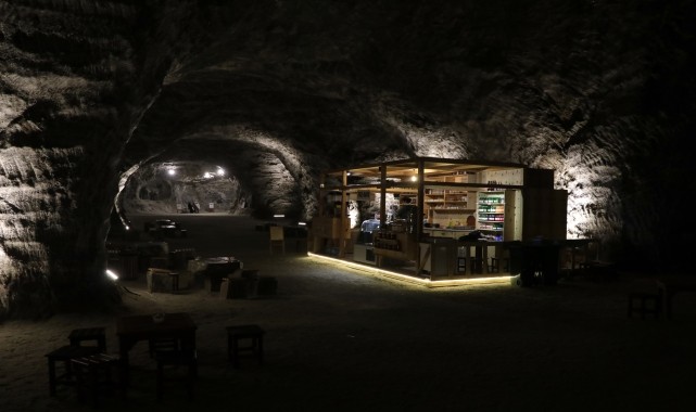 Ayrıca ziyaretçiler, mağara içindeki kafede tuz tanecikleri üzerinde pişirilen Türk kahvesinin tadına bakma imkanı buluyor.