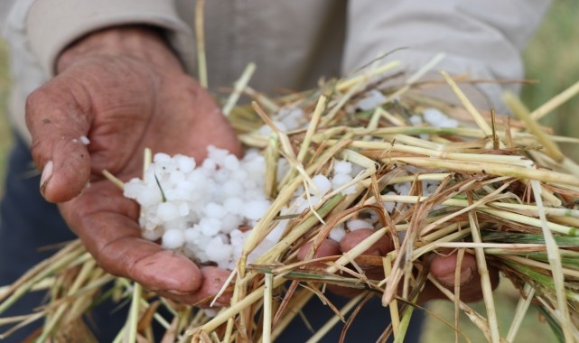 Yağışın ardından tarlalarını kontrol eden çiftçiler, dolu nedeniyle ekili ürünlerinin zarar gördüğünü belirtti.