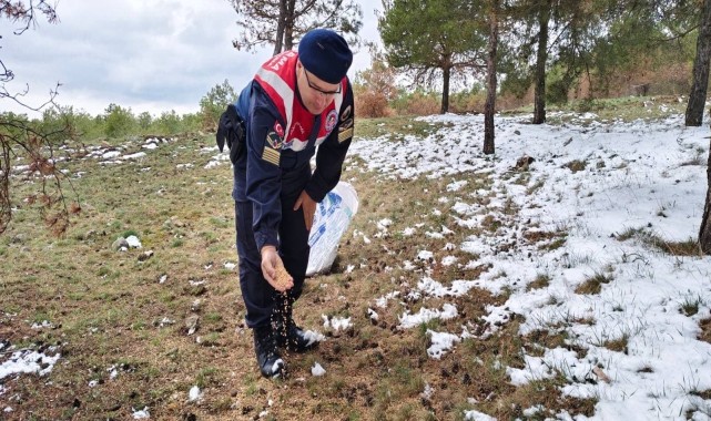 İl Jandarma Komutanlığı Çevre, Doğa ve Hayvanları Koruma Timi ile Sorgun İlçe Jandarma Komutanlığı ekipleri, Üçtepeler Tabiat Parkı çevresinde yiyecek bulmakta güçlük çeken yaban hayvanları için bölgeye yem bıraktı.