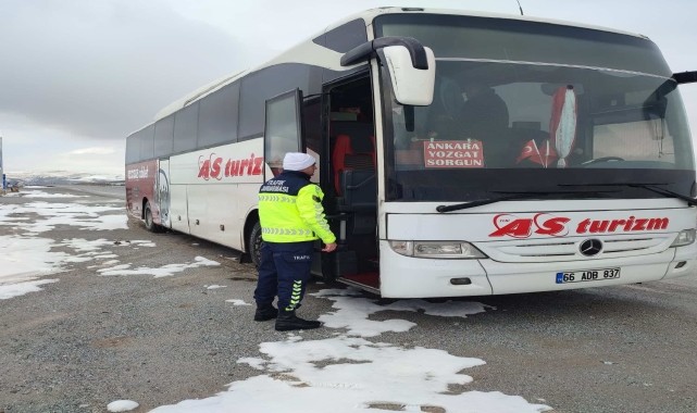 Sorgun-Çekerek devlet yolu üzerinden İstanbul-Kadışehri seferini yapan bir yolcu otobüsüne binen jandarma personeli, yolculuk boyunca sürücü ve yolcuları denetledi.