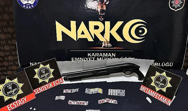 Narkotik ekiplerin uyuşturucu satıcılarına yönelik yaptığı çalışmalar kapsamında 6 Mart Çarşamba günü M.Ö. isimli şahsın ikamet ve işyerinde yapılan aramalarda 0,45 gram metamfetamin maddesi, 43 adet sentetik ecza maddesi ile 1 adet pompalı tüfek ele geçirildi.