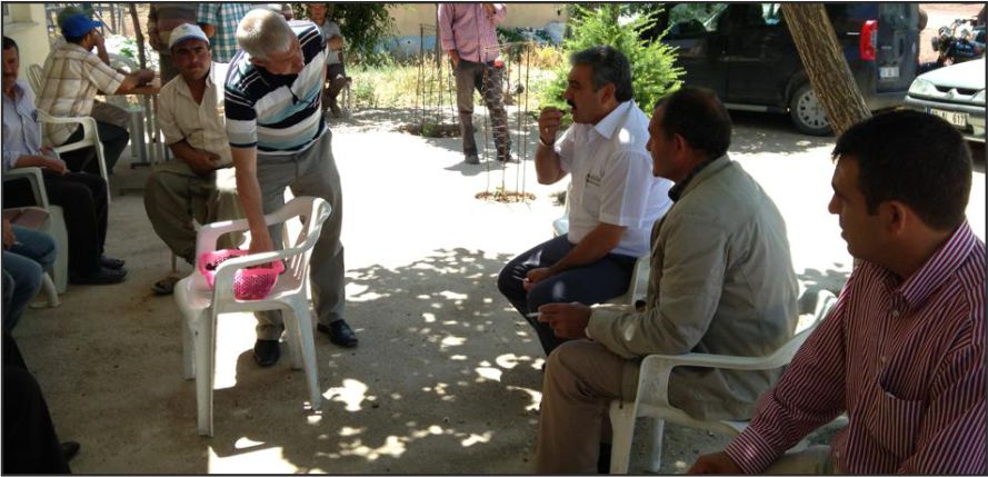 Alaçatı köyündeki toplantıda konuşan Ziraat Odası Başkanı Recep Muğlu, İl Genel Meclis başkanı ve üyesi Adem Kapar ile sorunları tesbiti ve çözümleri için köye lerini, sorunları dinlediklerini ve çözülmesi için üzerlerine düşen görevi yapacaklarını söyledi.